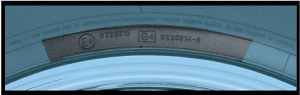 Approval is indicated by a letter and number indicating the country where approval was obtained, set within a circle. This symbol is molded into the sidewall next to a series of numbers that identify the Regulation Amendment Series under which the tire was approved.